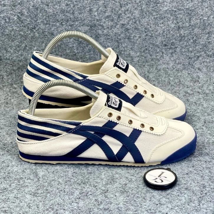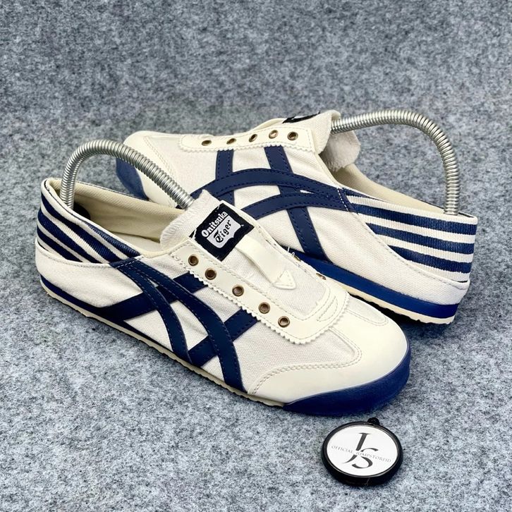 SEPATU WANITA ONITSUKA TIGER SLIP ON CREAM NAVY SIZE 36-40 SNEAKERS FREE ONGKIR