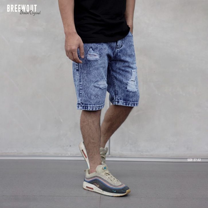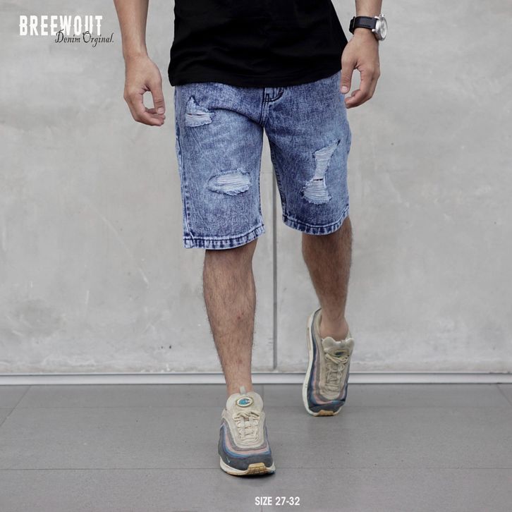 Celana Jeans Pendek Sobek / Celana Ripped Jeans Pendek Pria Casual Original Brewout
