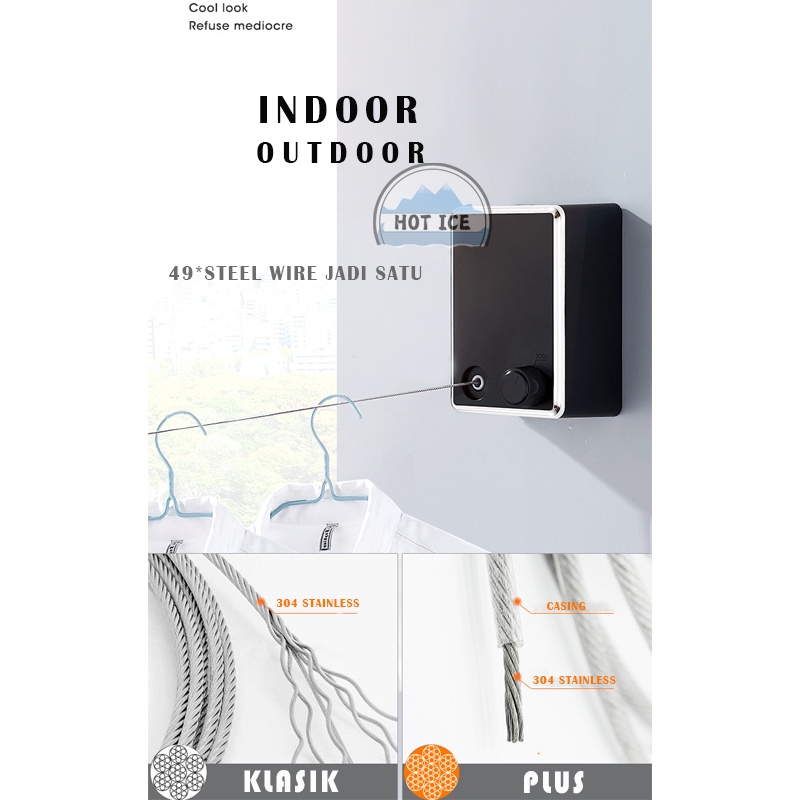 Jemuran Baju Portable Indoor Outdoor Retractable Tali Clothesline Bahan Stainless