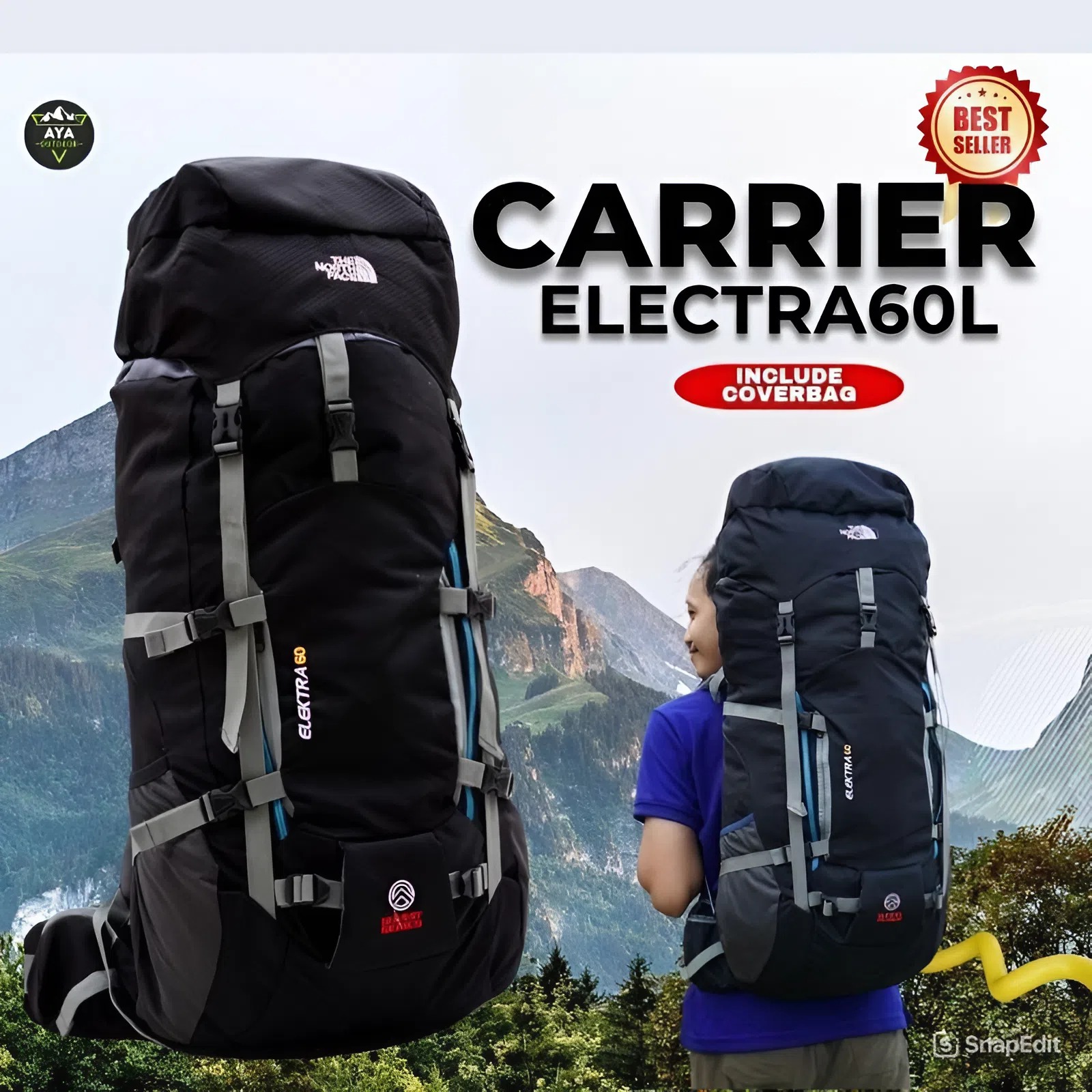 TAS CARRIER GUNUNG 60L + RAINCOVER TAS RANSEL PENDAKI OUTDOOR HIKING CAMPING WATERPROOF KUAT RINGAN BESAR TAS ADVENTURE