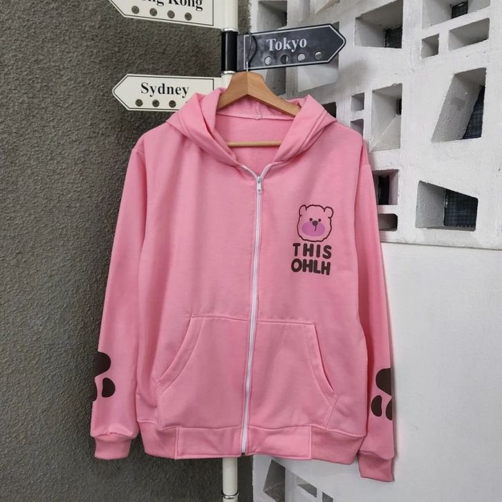 JAKET ZIPPER WANITA MOTIF BEAR THIS OHLH TERBARU BAHAN ADEM TEBAL BERKUALITAS / JACKET HOODIE CEWEK STYLE KOREAN MURAH