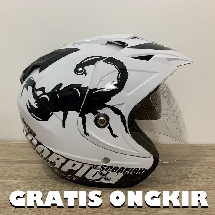 Helm Scorpio Putih Glossy Helm Dua Kaca - Double Visor - Helm Dewasa - Helm SNI