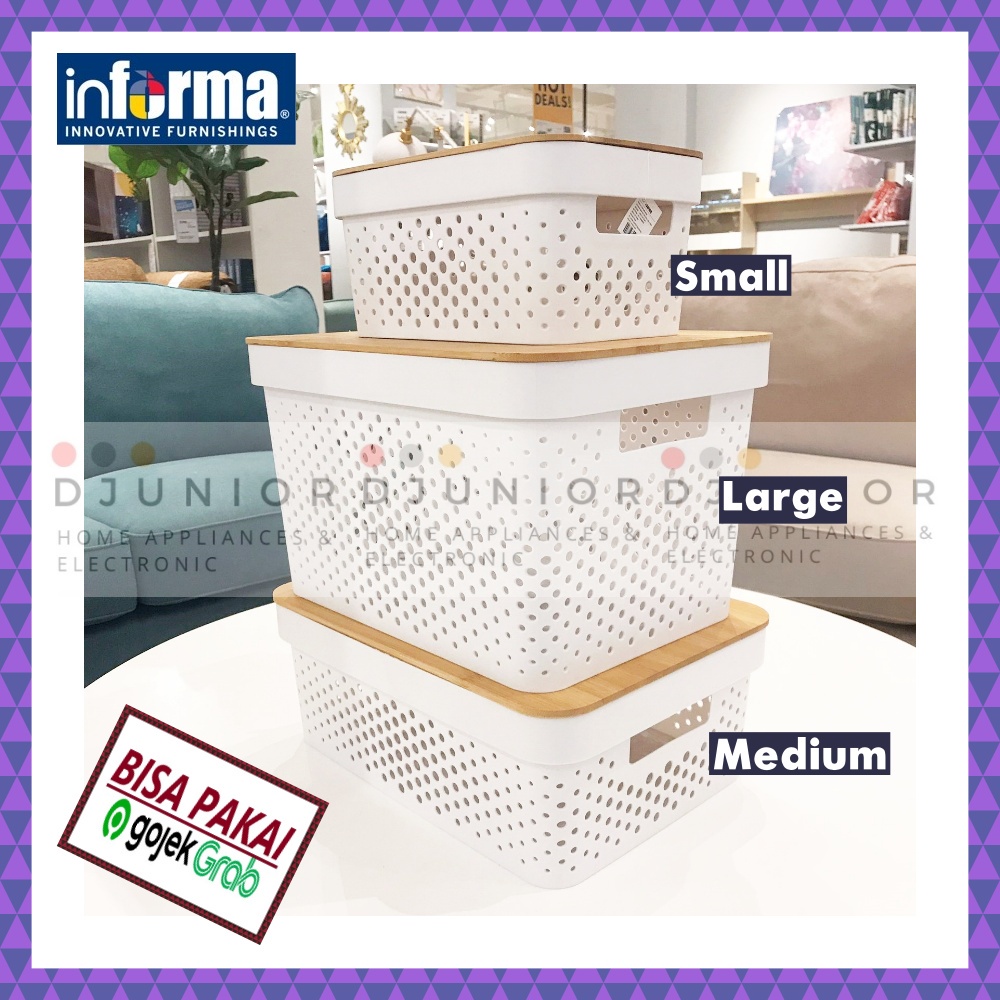 STORAGE BOX NATURAL WAFFLE WHITE / KOTAK PENYIMPANAN TUTUP KAYU