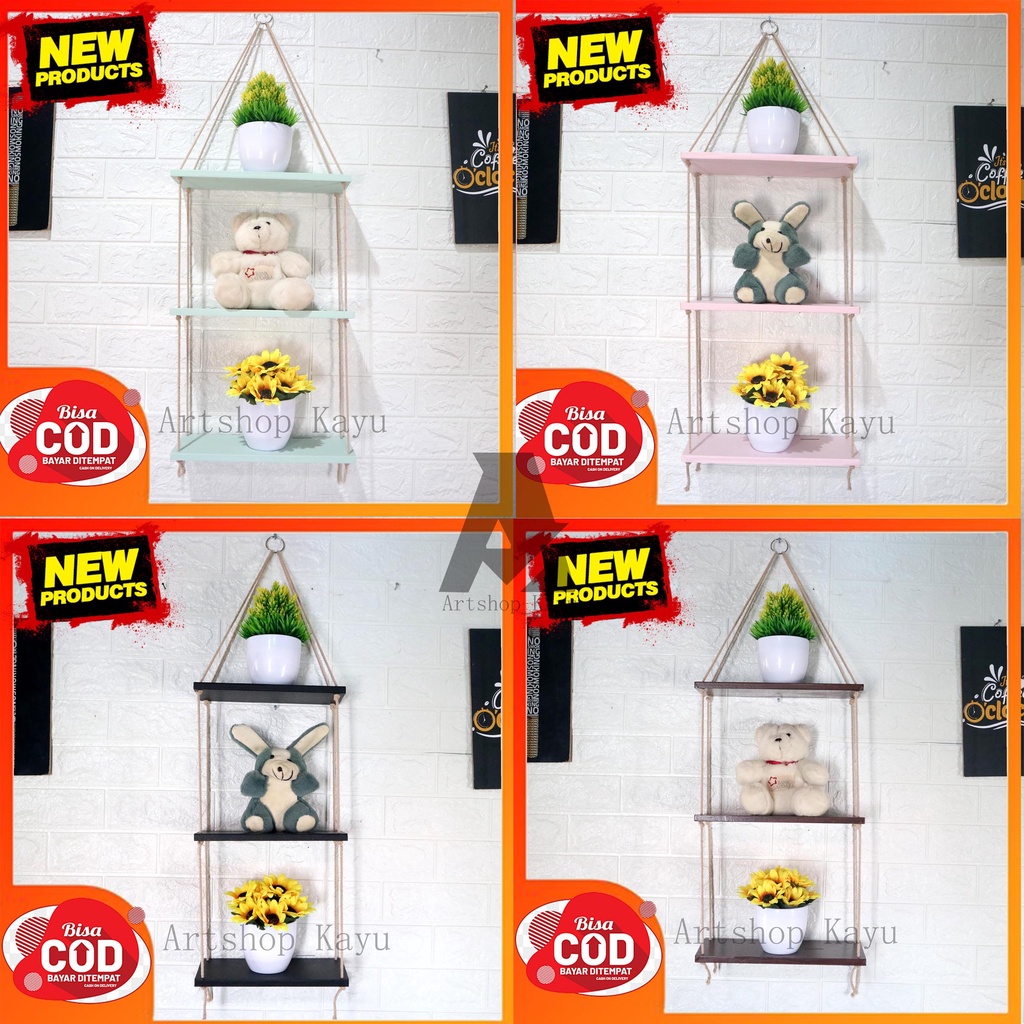 FREE ONGKIR RAK DINDING KAYU Minimalis / RAK SERBAGUNA / RAK Dinding Tali / Dekorasi Rumah / furniture