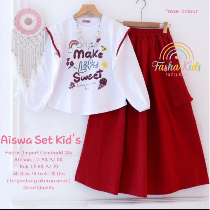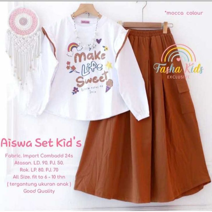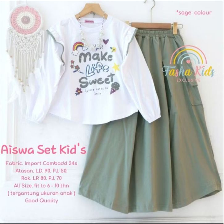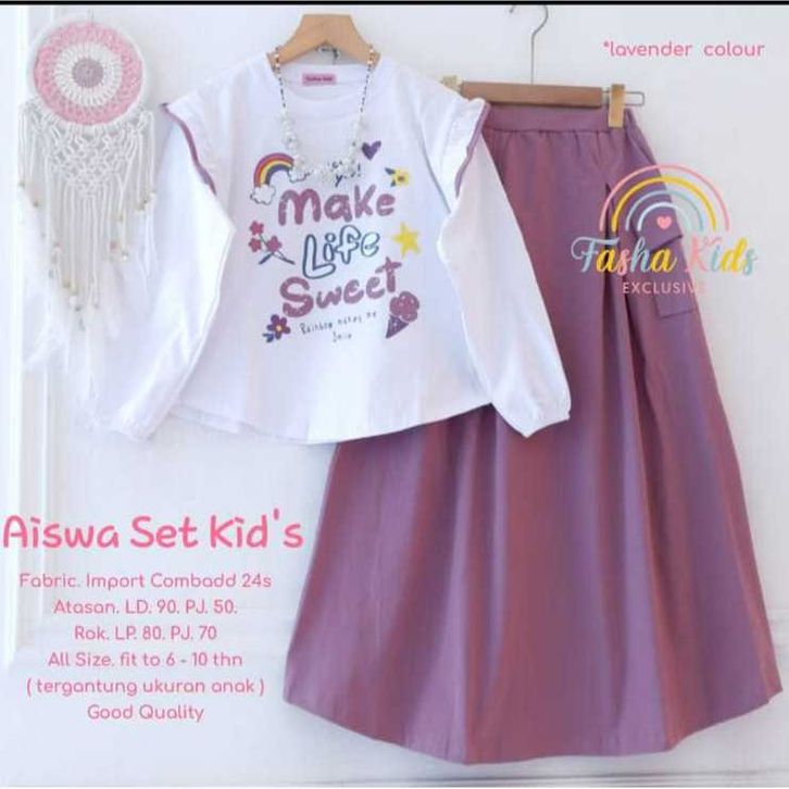 [Star] Setelan Baju Muslim Anak Perempuan 3-12 Tahun Setelan Rok Baju Lengan Panjang Anak Perempuan Aiswa Set Rok Anak C