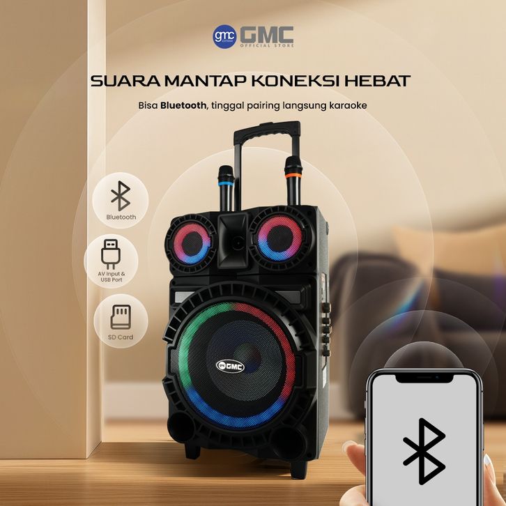 GMC SPEAKER 897W KARAOKE BLUETOOTH AKTIF 10 INCH 175W 2 MIC WIRELESS BASS TERBARU SPEKER BOX 897L 897H 897Z