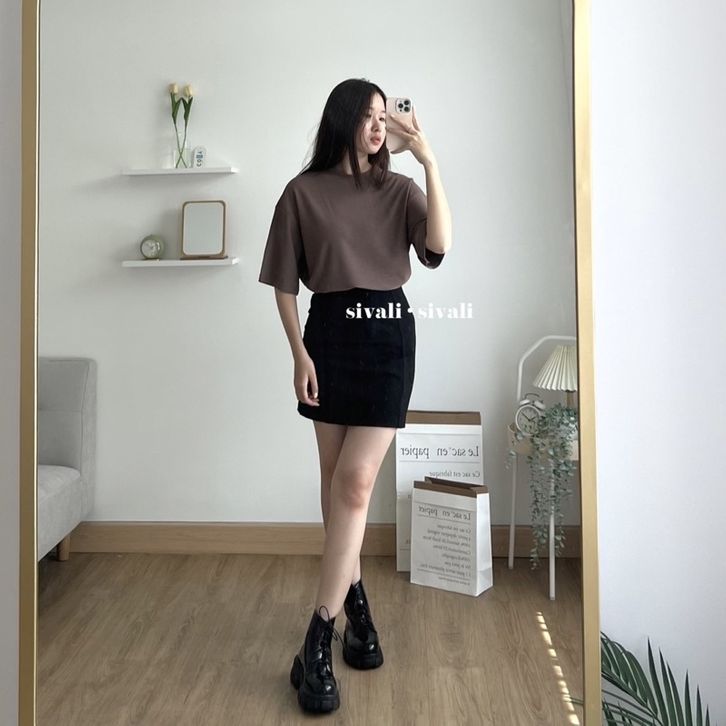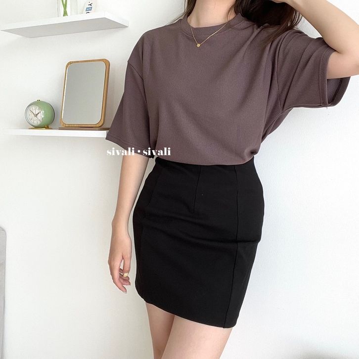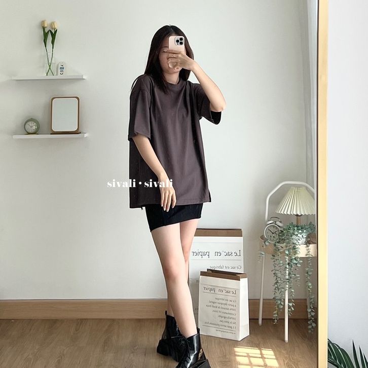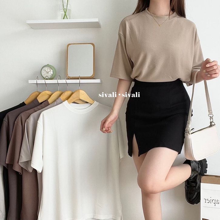 SIVALI Oversize Basic Tee | Oversized Korea T-Shirt with Slit - Kaos Polos Unisex Premium 5300