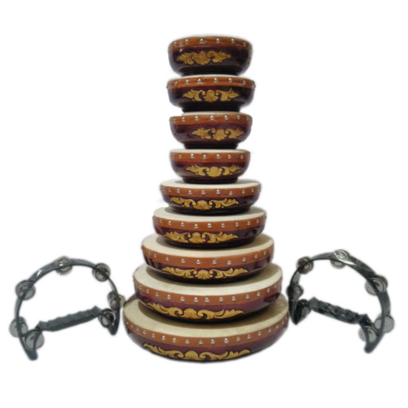REBANA LASKI 1 SET LENGKAP 11 ALAT KOMPLIT PELANGI POLOS UKIR BAS KOTEK REBANA TAMBORIN KECREK HADROH QOSIDAH MARAWIS