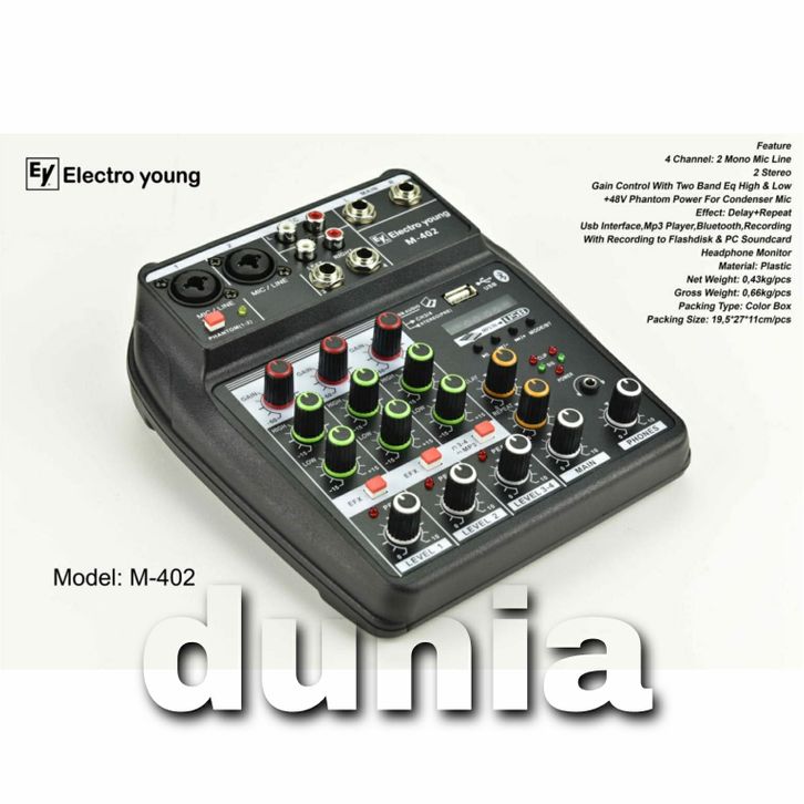 Mixer Electro Young M 402 Original 4 Channel Bluetooth - USB Soundcard