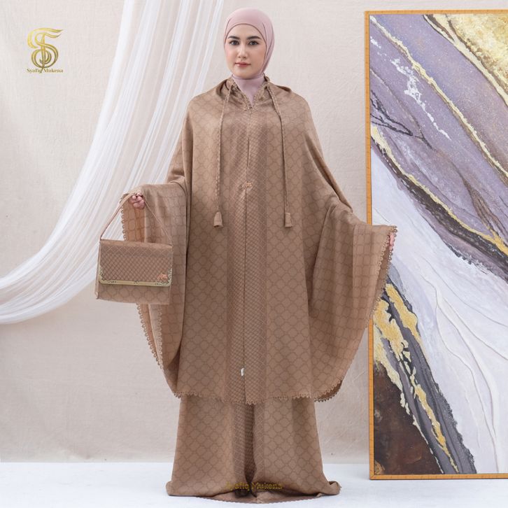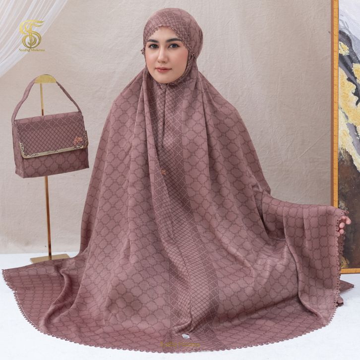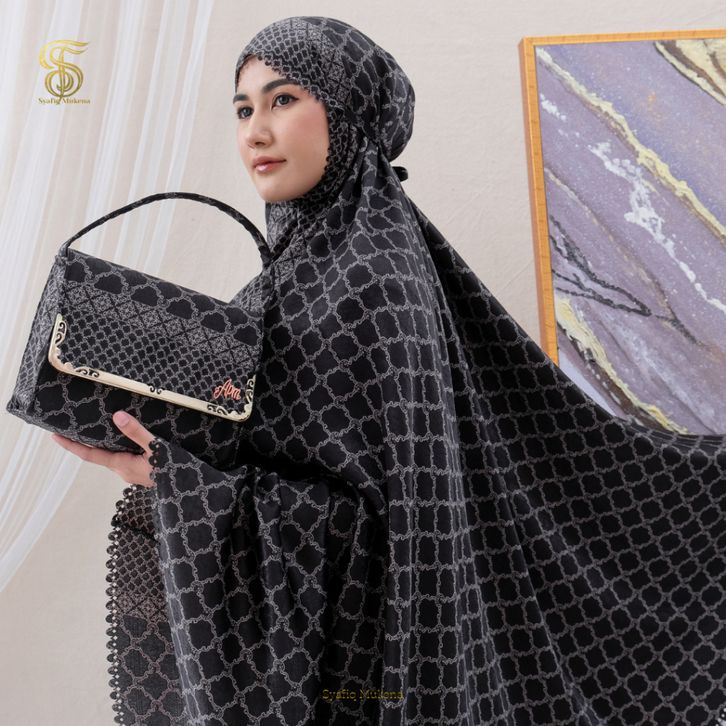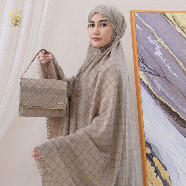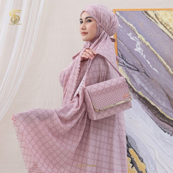 Syafiq Mukena Dewasa Mewah Santorini Silk Motif 2in1 Terbaru 2025/2026 Kekinian Jumbo Murah Perempuan Traveling