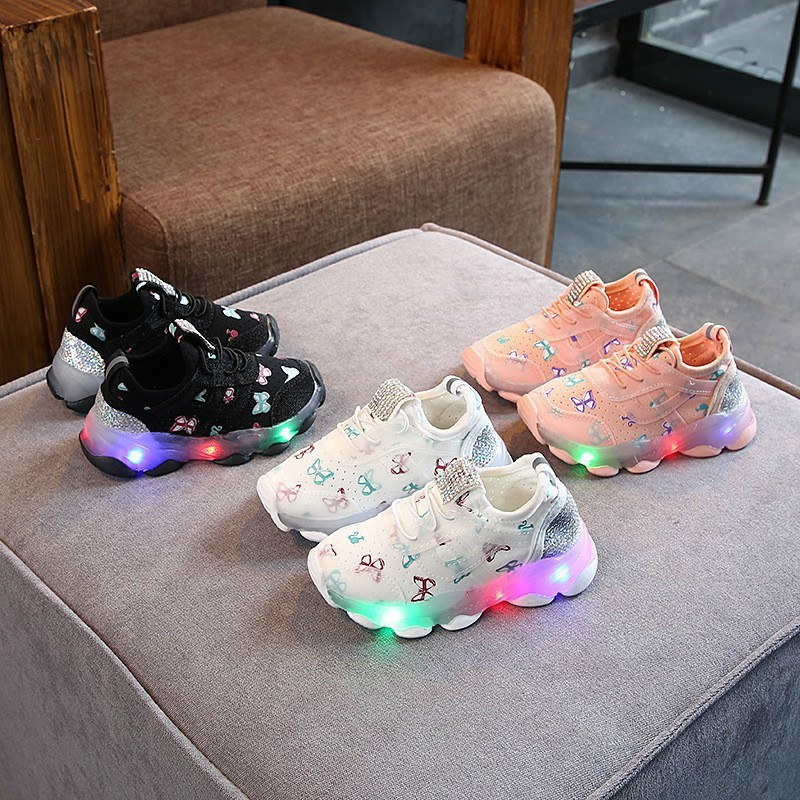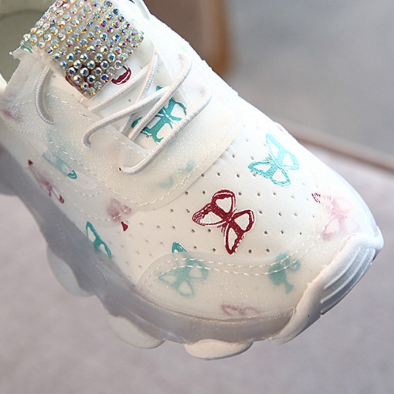 PROMO SEPATU ANAK PEREMPUAN LED SNEAKERS MOTIF KUPU KUPU BISA NYALA.
