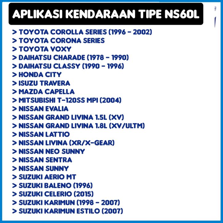 Aki Mobil Grand Livina/Corolla Series/Honda City/Travela/Karimun/Baleno/Capella GS Gold Shine NS60L premium 45 AH