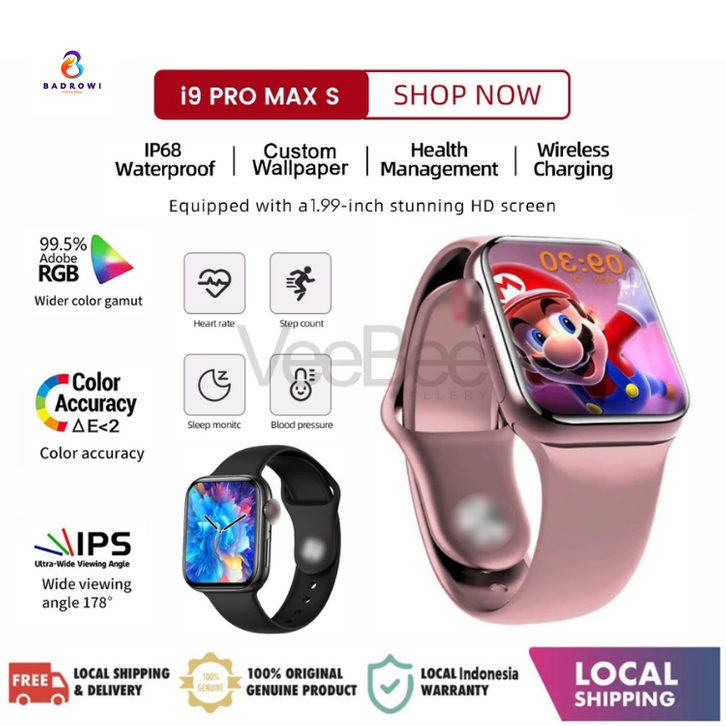 [Mall] Smartwatch Series 9 Terbaru i9 PRO MAX S Layar Full HD Wireless Charger Jam Tangan Pria Wanita