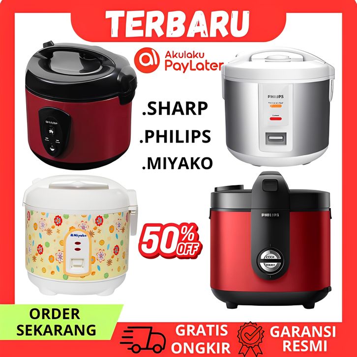 COSMOS BIRU + PENGUKUS 0,6 L, MIYAKO (1,8 LITER), SHARP MERAH 1,8 L, SHARP SILVER 1,8 L, Cosmos CRJ-3012 1.2L, SANEX MC-258 1 LITER, OOKAS 5L-Hitam, Cosmos Harmond 2.0L, HAN RIVER RICE COOKER Beige-1.8L, Philips1.8 L Grey, Philips 1.8 L Pink , Philips 1.8 L Biru , Putih, MIYAKO BATIK, Philips Digital, Panci