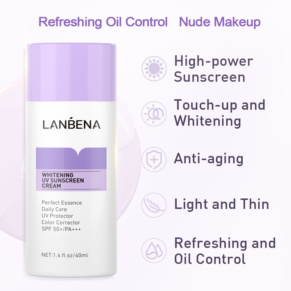 [BPOM] LANBENA Whitening UV Sunscreen Cream SPF50+ Purple/Green Sunscreen Carasun Moisturizer Sunblock Mencerahkan Body