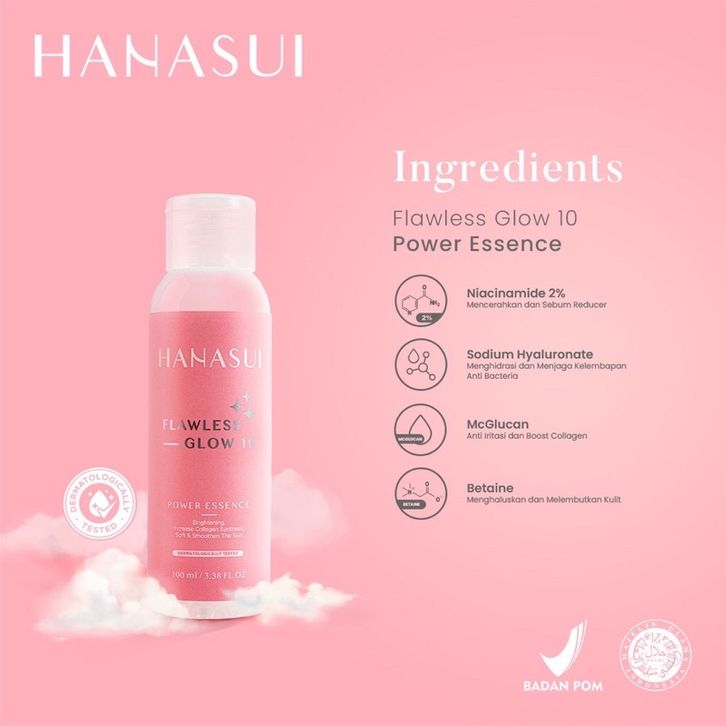 PAKET HANASUI FLAWLESS GLOW 10 GENTLE CLEANSER POWER ESSENCE DAY & NIGHT CREAM