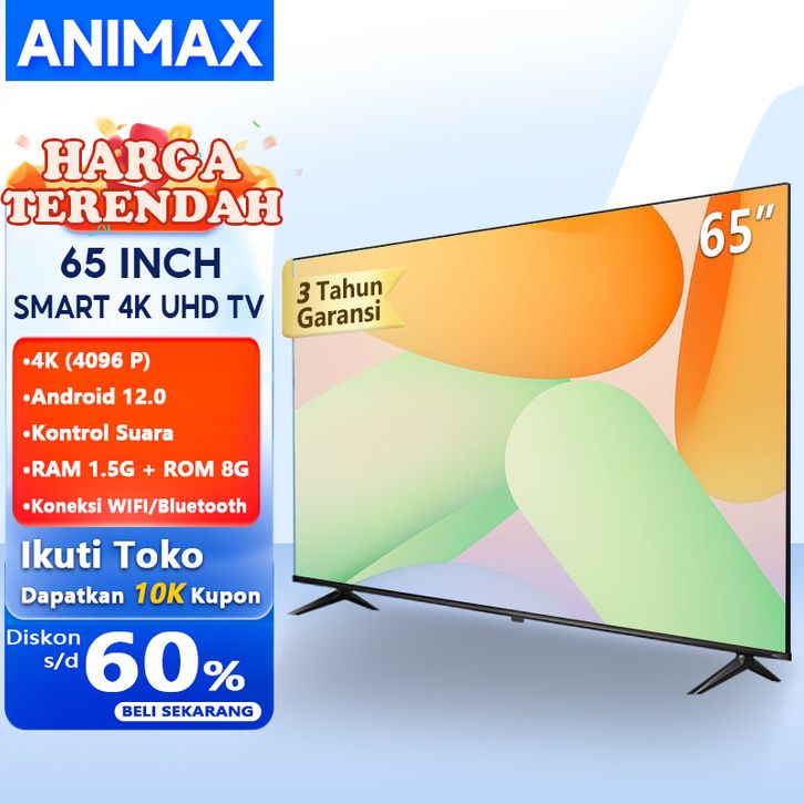 Animax Sakura Smart TV Digital 65 inch murah promo TV Android 11.0 Digital TV 4K UHD(Smart-S65A)