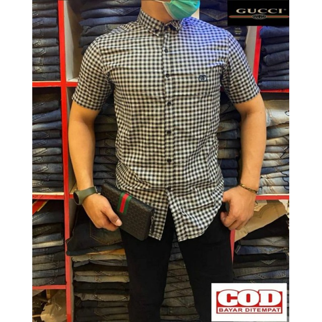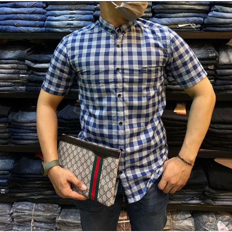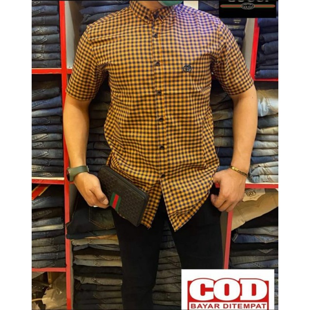 ORIGINAL - KEMEJA KOTAK KOTAK PRIA LENGAN PENDEK PREMIUM / BAJU HEM PRIA LENGAN PENDEK