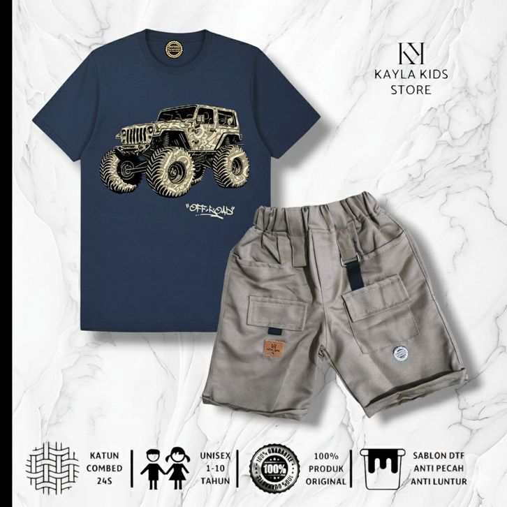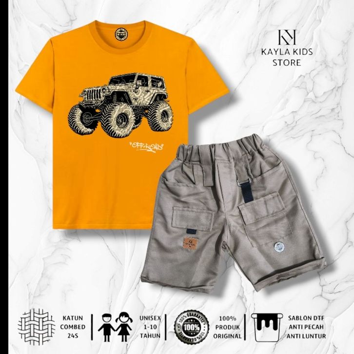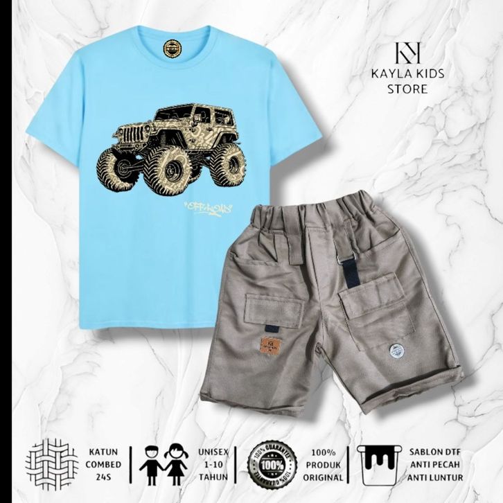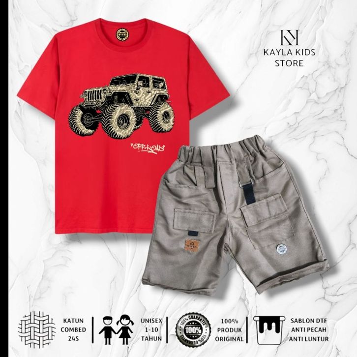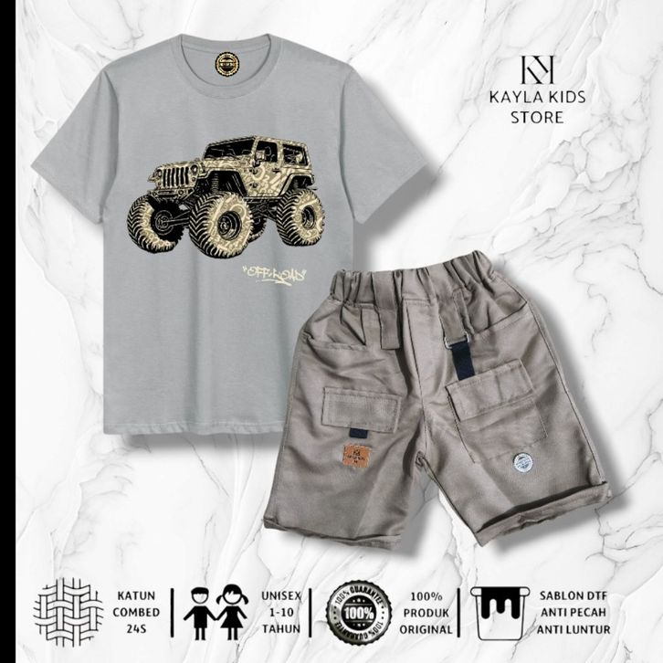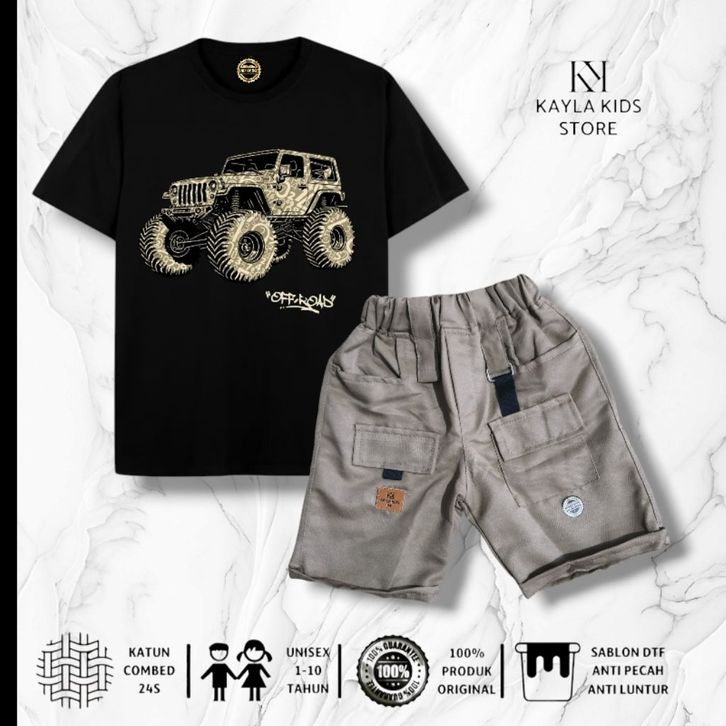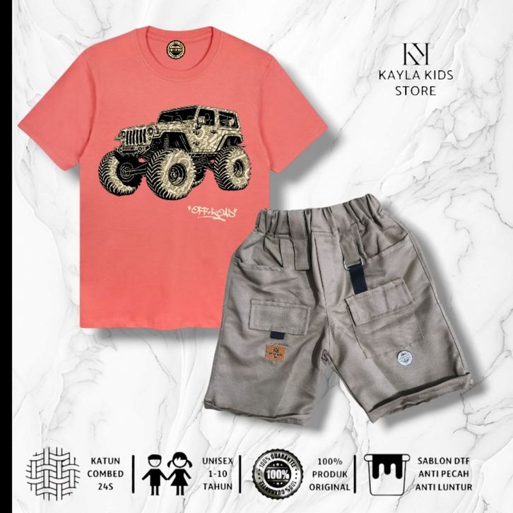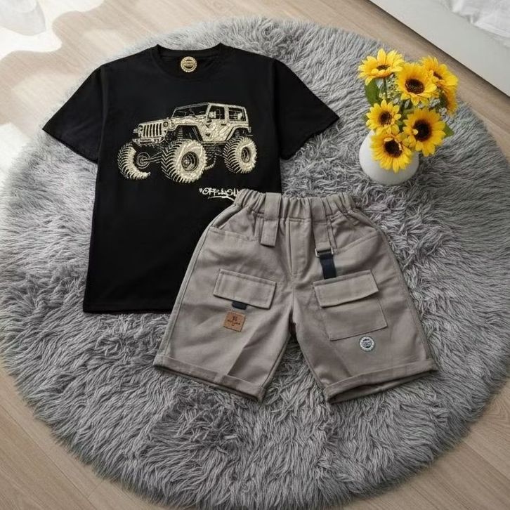 Setelan baju distro dan celana cargo pendek untuk anak laki-laki usia 1-9 tahun Bahan Katun Premium Baju Anak Cowok