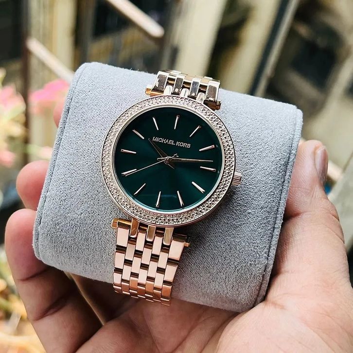 JAM TANGAN WANITA MICHAEL KORS MK3402 ROSEGOLD DIAL BLACK STAINLESS STEEL ORIGINAL-FREE ONGKIR