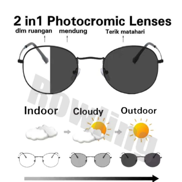 2 In 1 Kacamata lensa photocromic anti radiasi wanita pria kacamata bingkai Titanium perubahan warna fotocromic New #62