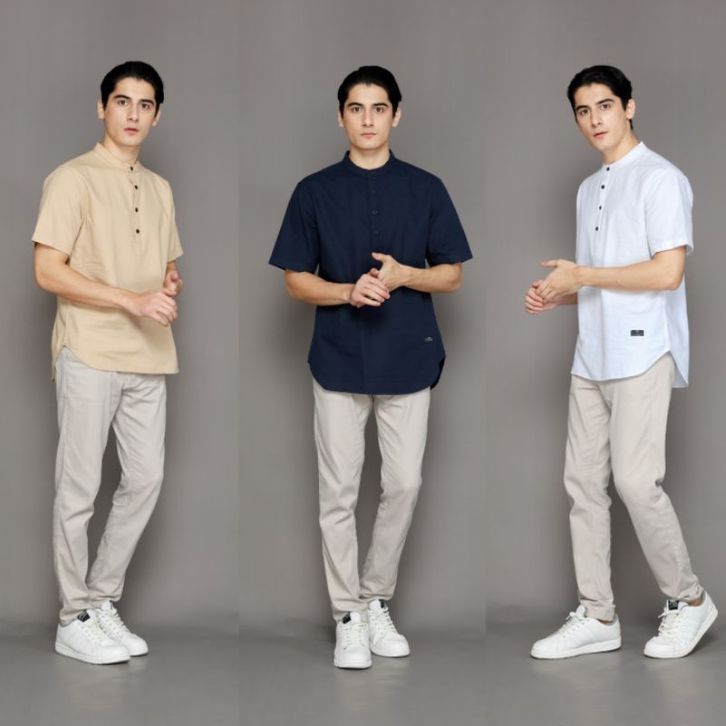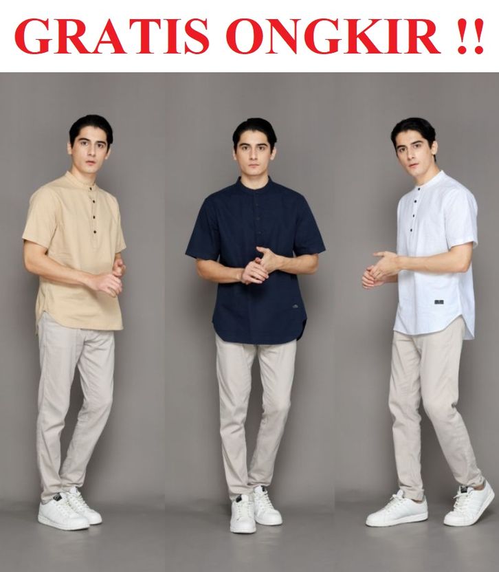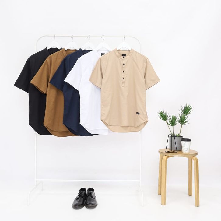 Kemeja Koko Pria Lengan Pendek Katun Linen Premium - Baju Koko Linen Basic Polos - Kemeja koko lengan pendek - Baju koko