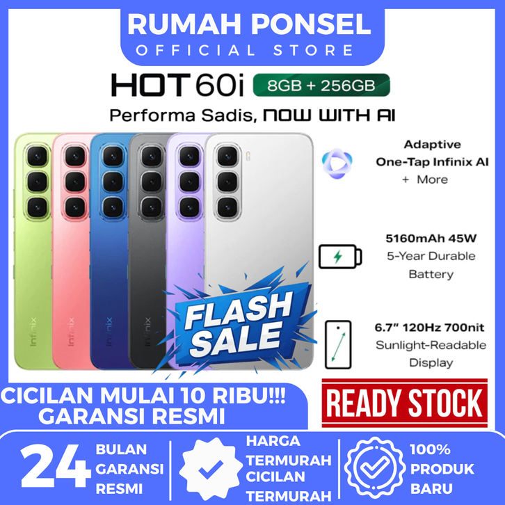 [FLASH SALE] HP Infinix Hot 60i 6/128GB 8/256GB | Up to 16GB Extended RAM | Garansi Resmi | Rumah Ponsel Jakarta