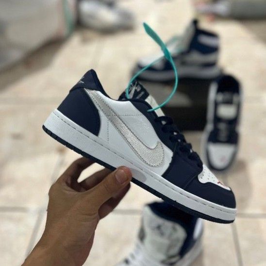 SEPATU PRIA/WANITA NIKE JORDAN 1 NAVY SILVER LOW AND HIGH PREMIUM MIRROR FREE ONGKIR