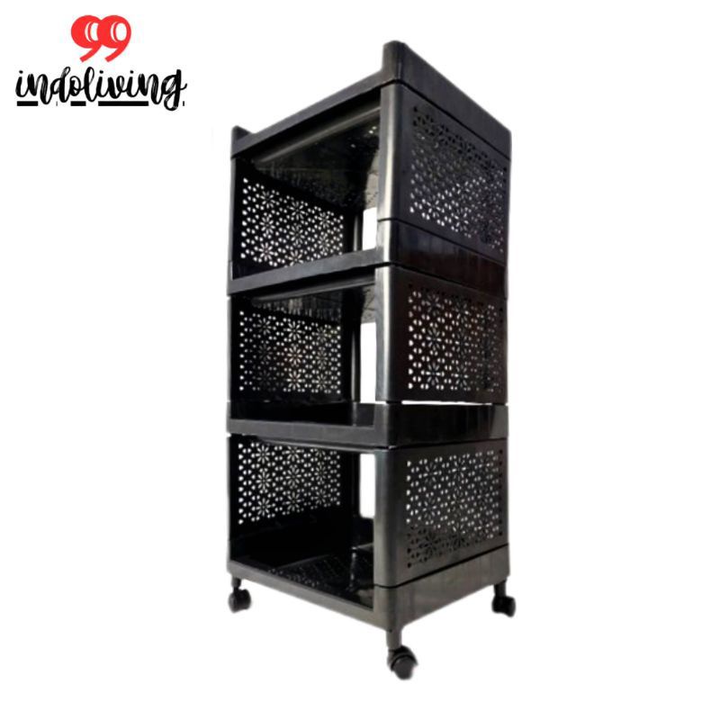 RAK YOYO 4 SUSUN DAN 5 SUSUN | LEMARI PLASTIK SERBAGUNA DORONG - HITAM