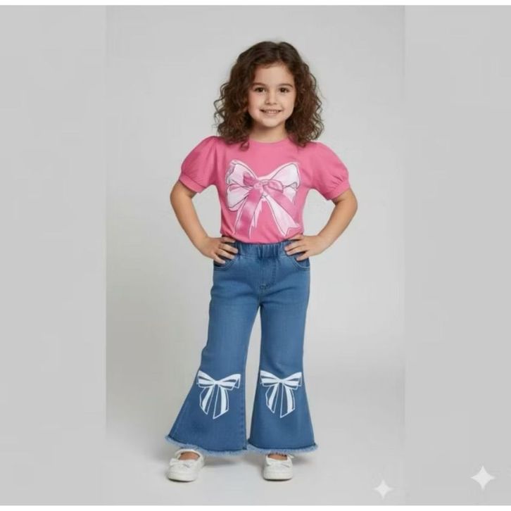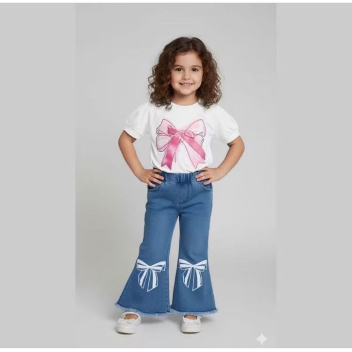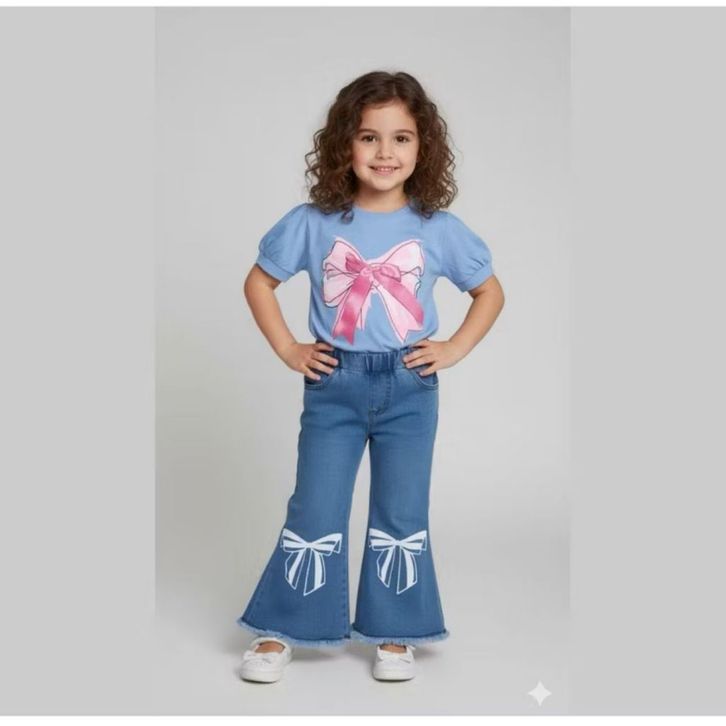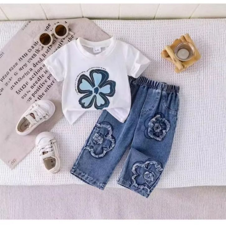 Setalan Jeans Denim Cutbray Anak Perempuan 1-5 Tahun One Set Baju Anak Cewek Lucu Kekinian Motif Bunga