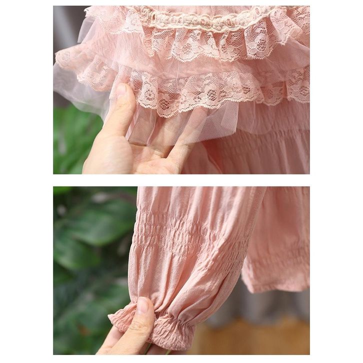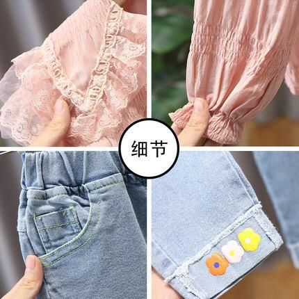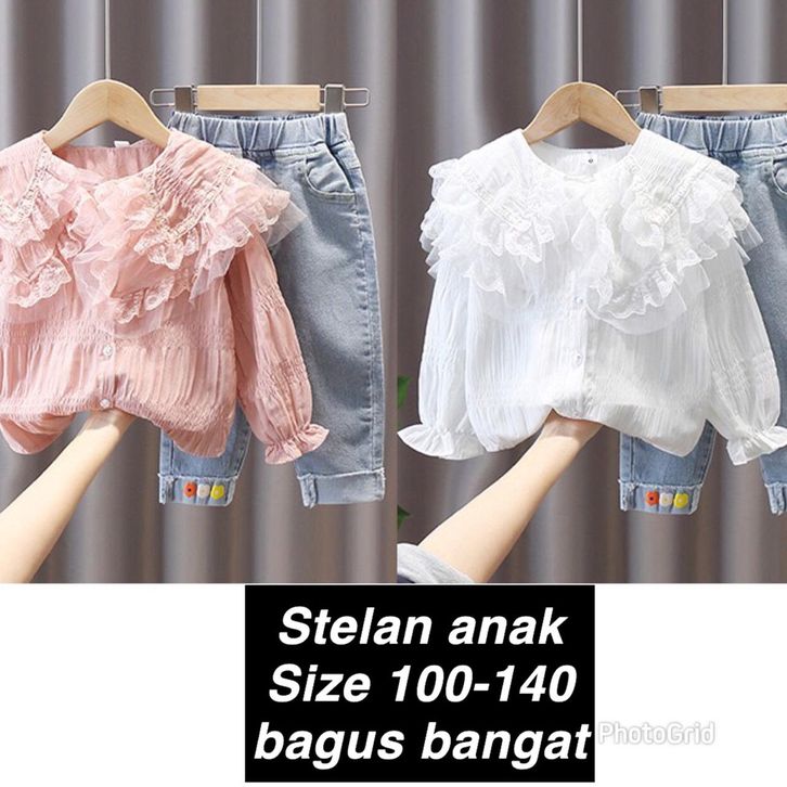 Baju Lebaran Anak Perempuan Setelan Anak Cewek Float Collar Celana Jeans Size 100-140 Umur 1-7 Tahun Bs-905 Terbaru 2026