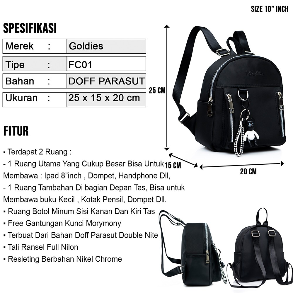 GOLDIES TAS RANSEL WANITA MINI STYLE KOREA IMPORT TAS BACKPACK MINI ANTI AIR FREE GANTUNGAN