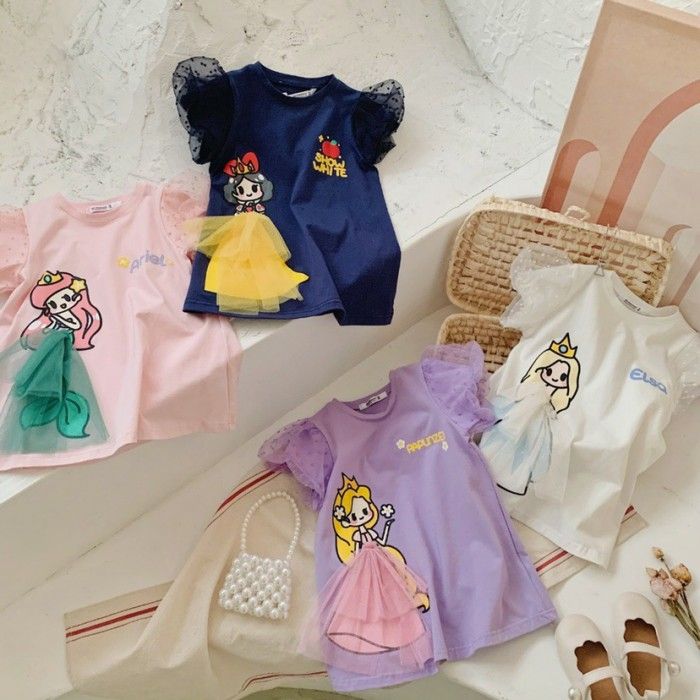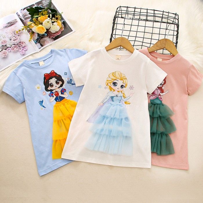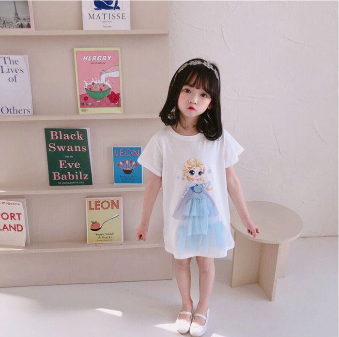 Dress Kasual anak perempuan Elsa Snow White Mermaid Model T-shirt - Elsa, 120cm ready stock