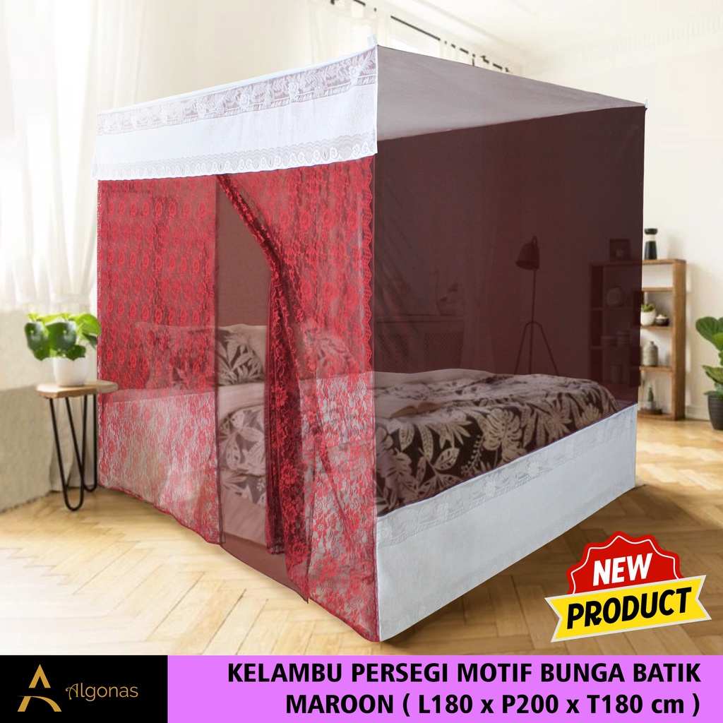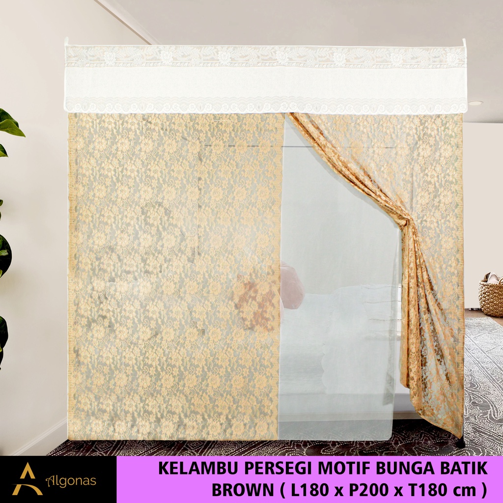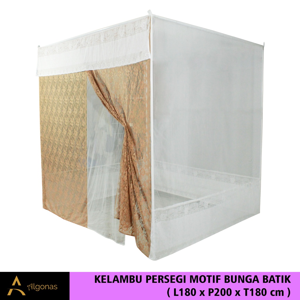 FREE ONGKIR Original Kelambu Tidur Persegi Deluxe Quality Motif Bunga Batik Mewah Dengan Poni 180x200x180