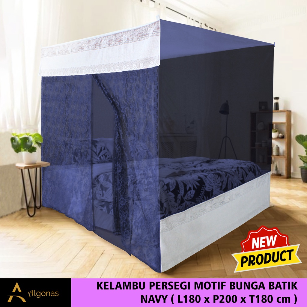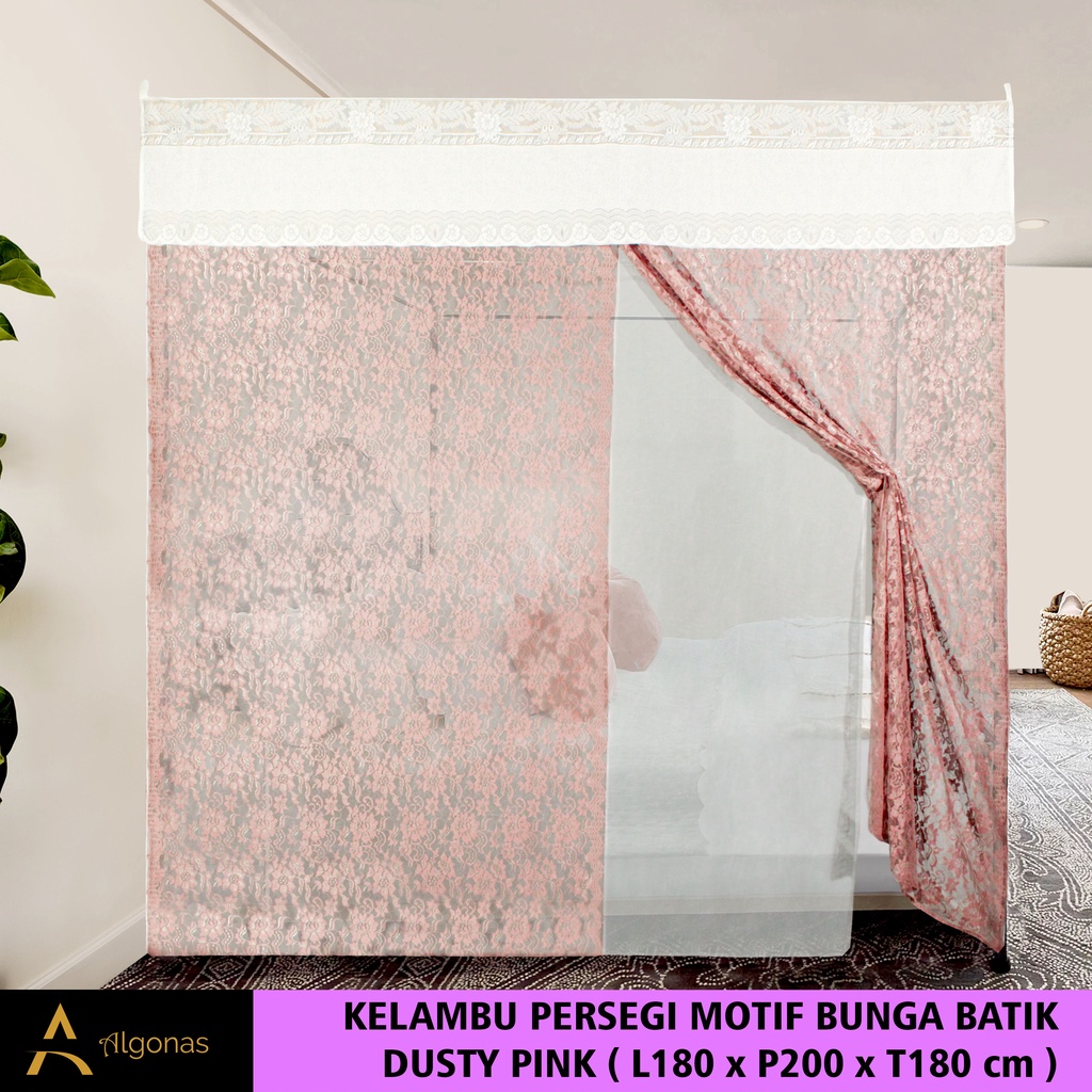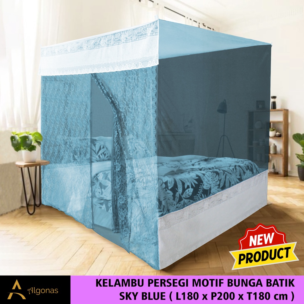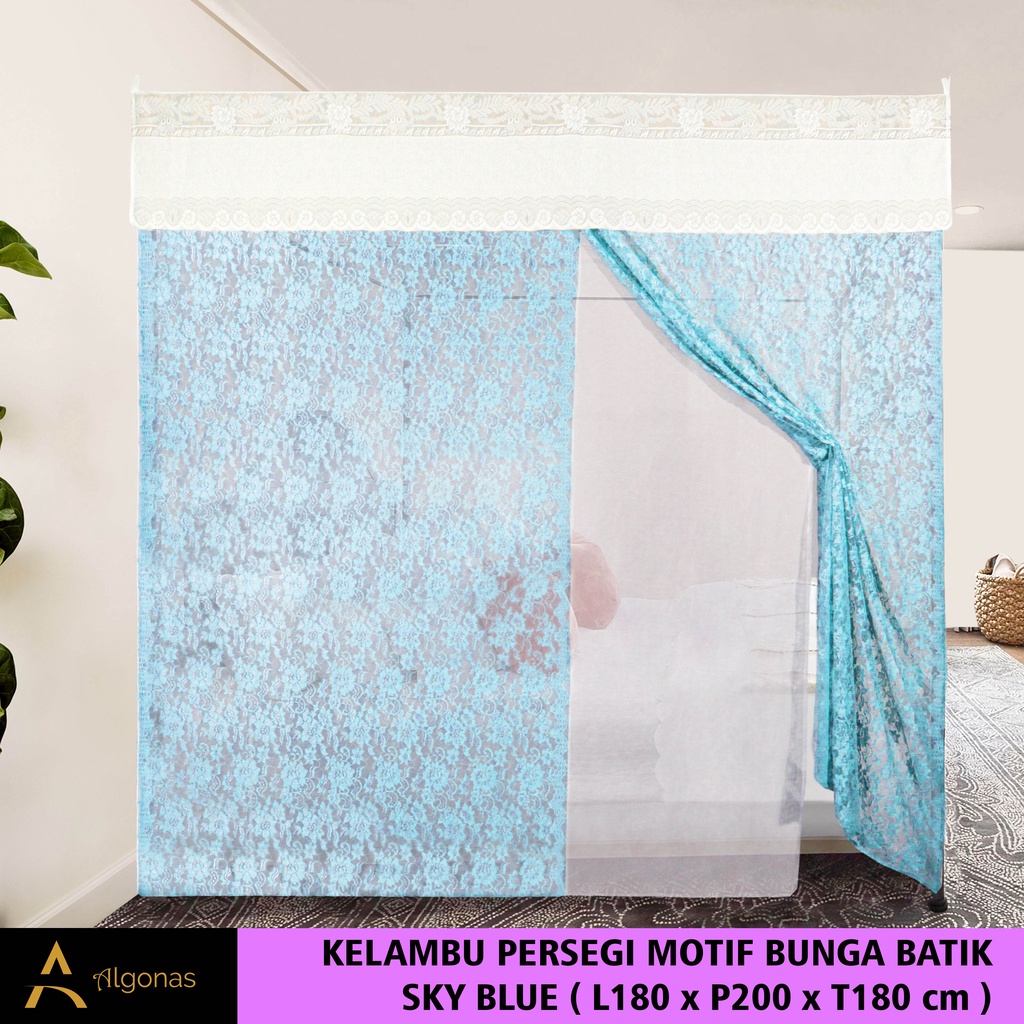 FREE ONGKIR Original Kelambu Tidur Persegi Deluxe Quality Motif Bunga Batik Mewah Dengan Poni 180x200x180
