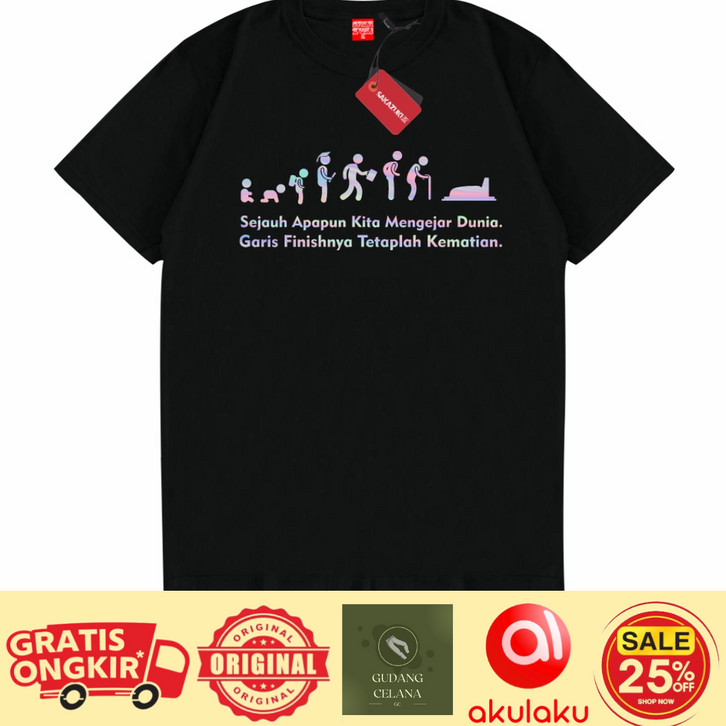 Kaos Dakwah Islam SEJAUH APAPUN MENGEJAR DUNIA GARIS FINISHNYA TETAPLAH KEMATIAN T-Shirt Muslim Islami Distro Unisex