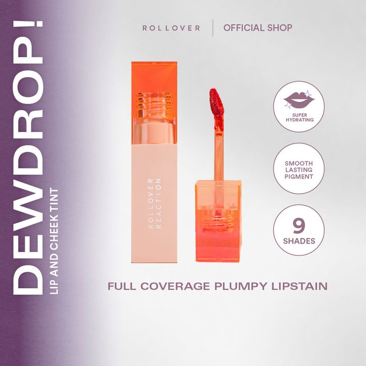 Rollover Reaction DEWDROP 12hr+ Hydrating Long Lasting 2 in 1 Liptint for Lips and Cheek