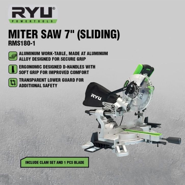 GRATIS ONGKIR!!! RMS180-1 MITER SAW SLIDING GERGAJI KAYU 7" 7 " INCH RYU RMS 180 - 1