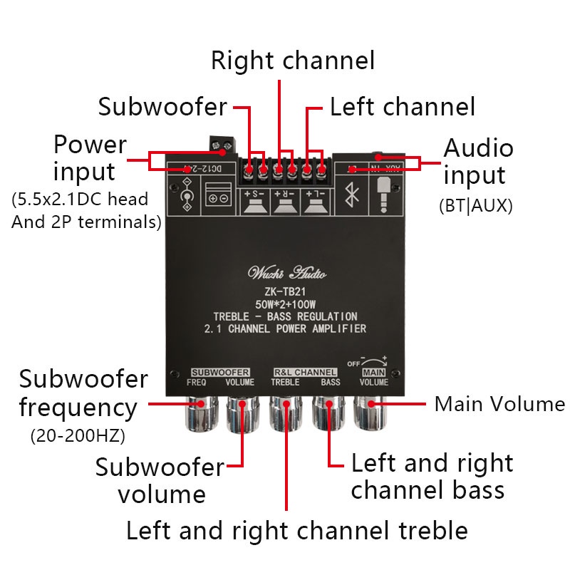 ZK-TB21 TPA3116D2 BLUETOOTH 5.0 AMPLIFIER BOARD 50WX2+100W