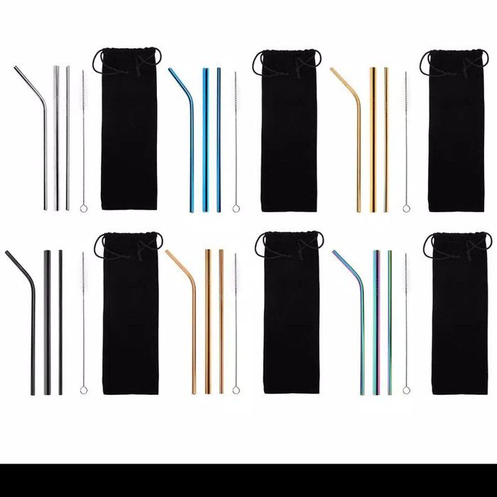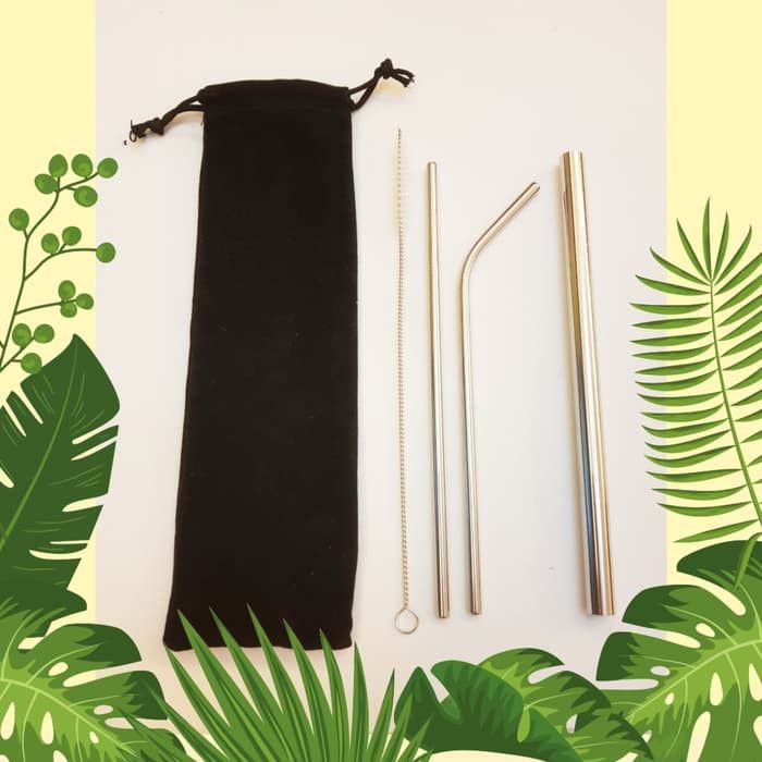 SEDOTAN MINUMAN 1 SET / 5 IN 1 STRAW STAINLESS / SEDOTAN STAINLESS - SILVER