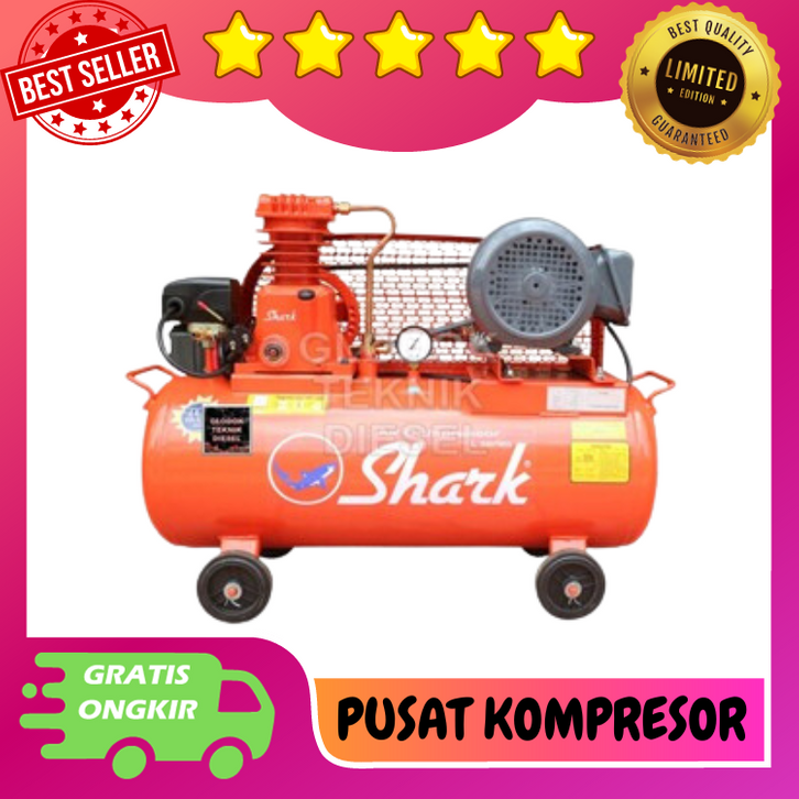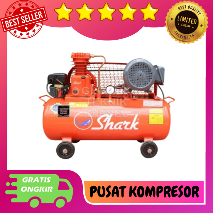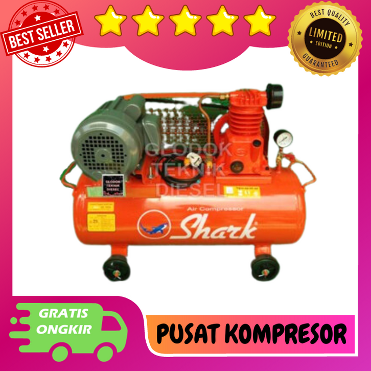 NO DP SHARK 1/4 HP 0.25 PK KOMPRESOR ANGIN + DINAMO ELECTRO MOTOR FULL TEMBAGA ORIGINAL MINI LISTRIK LAKONI MESIN TAKONI