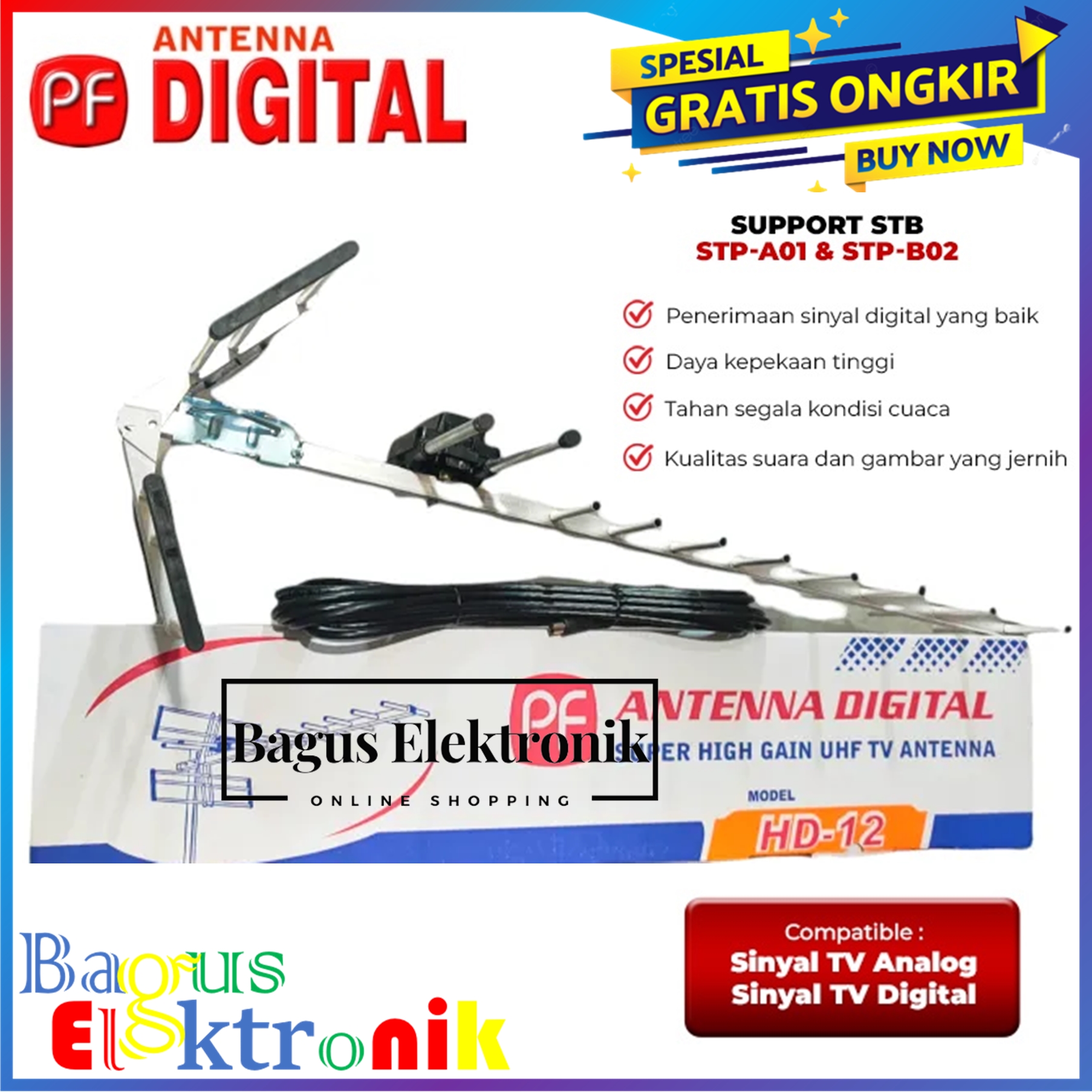 Antena tv luar digital PF HD12 + kabel 12 Meter antena antenna luar outdoor pf digital hd12 hd