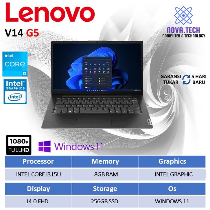 Laptop Lenovo V14 G5 | Intel Core i3 -1315U RAM 8GB SSD 256GB Layar 14.0" FHD Windows 11 Garansi Resmi