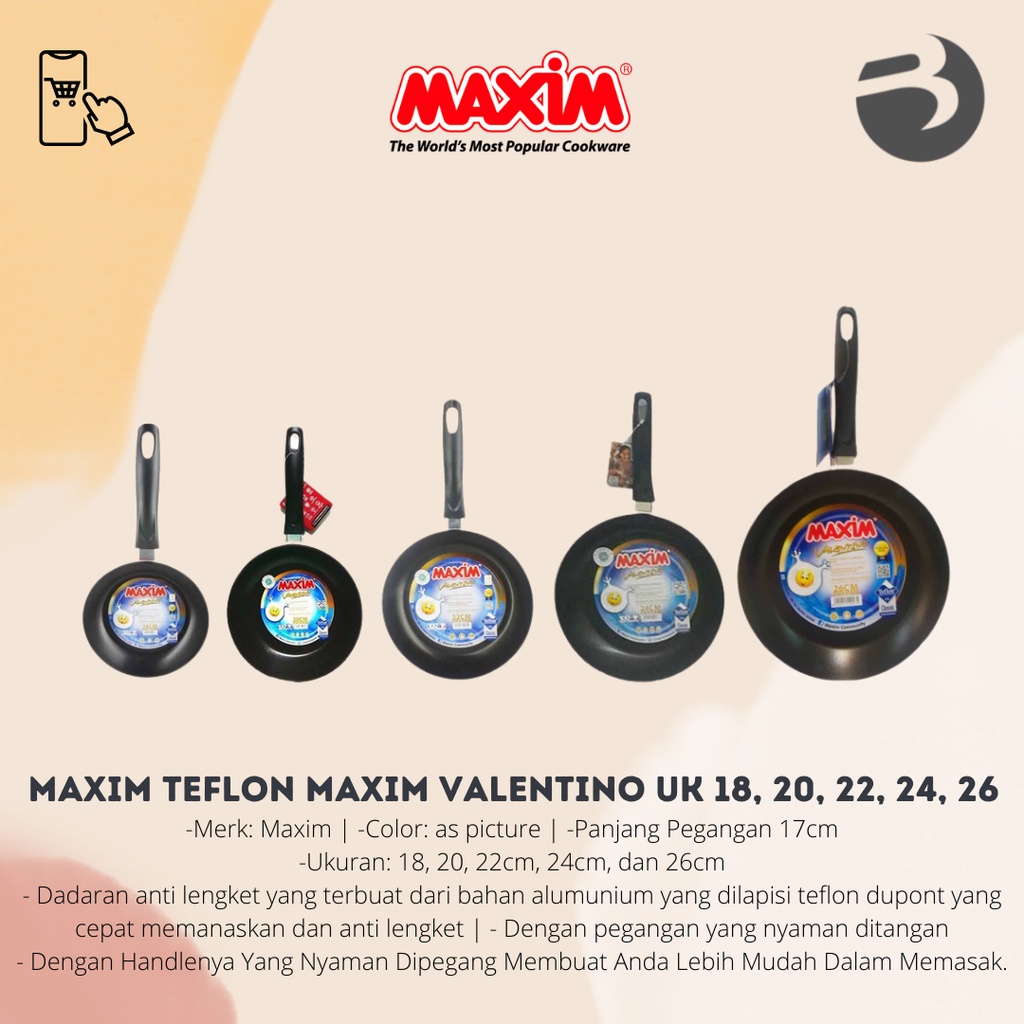 FREE ONGKIR Maxim Teflon M4xim Valentino Uk 18, 20, 22, 24, 26 cm