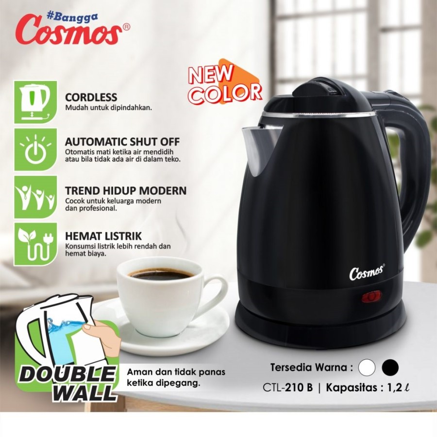 FREE ONGKIR Cosmos CTL210 Kettle Listrik 1.2Liter Teko Pemanas Air 600Watt CTL-210 CTL210B
