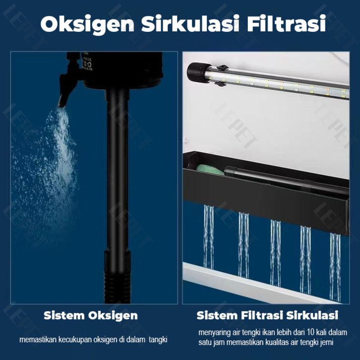 LEPET Akuarium Ikan 320/400/520/620 Tangki Ikan Mini Dengan Filter Dan Lampu Led