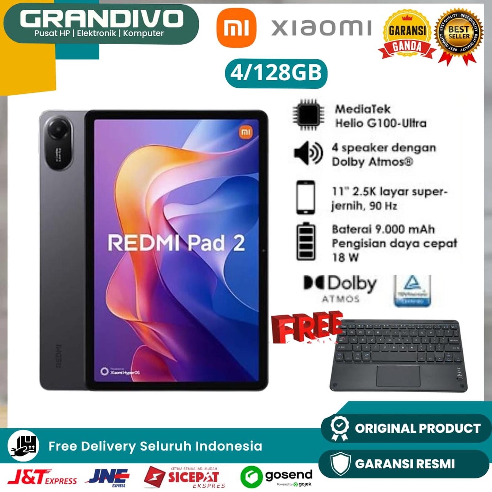 Free Keyboard Xiaomi Redmi Pad 2 Ram 4/128G 11" Layar Super-jernih Helio G100-Ultra Garansi Resmi - Grandivo
