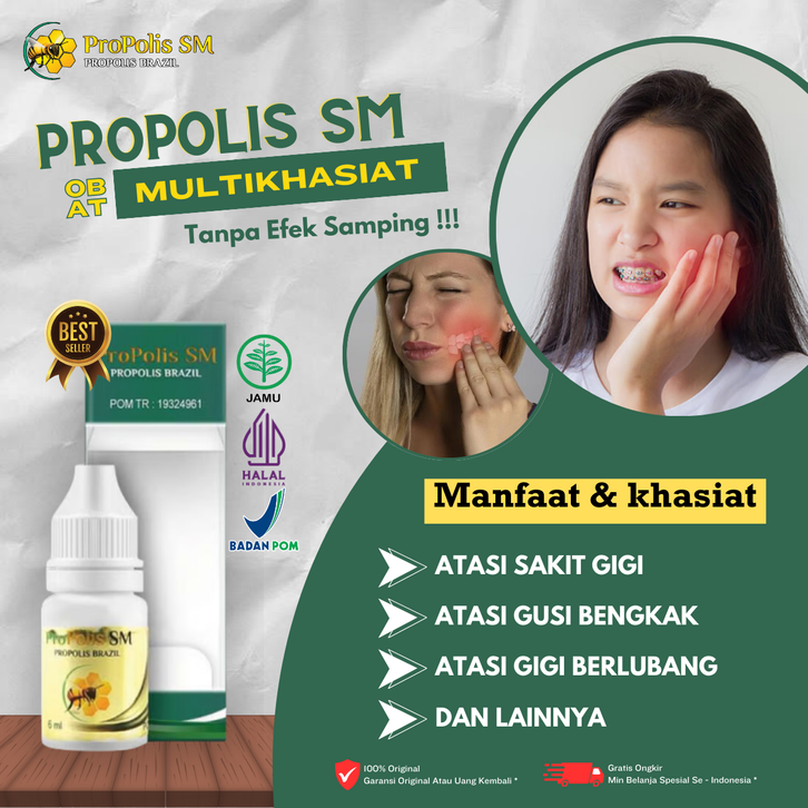 Obat Sakit Gigi, Obat Sakit Gigi Berlubang, Obat Pembersih Gigi, Obat Gusi Bengkak, Obat Gigi Keropos Propolis SM Herbal
