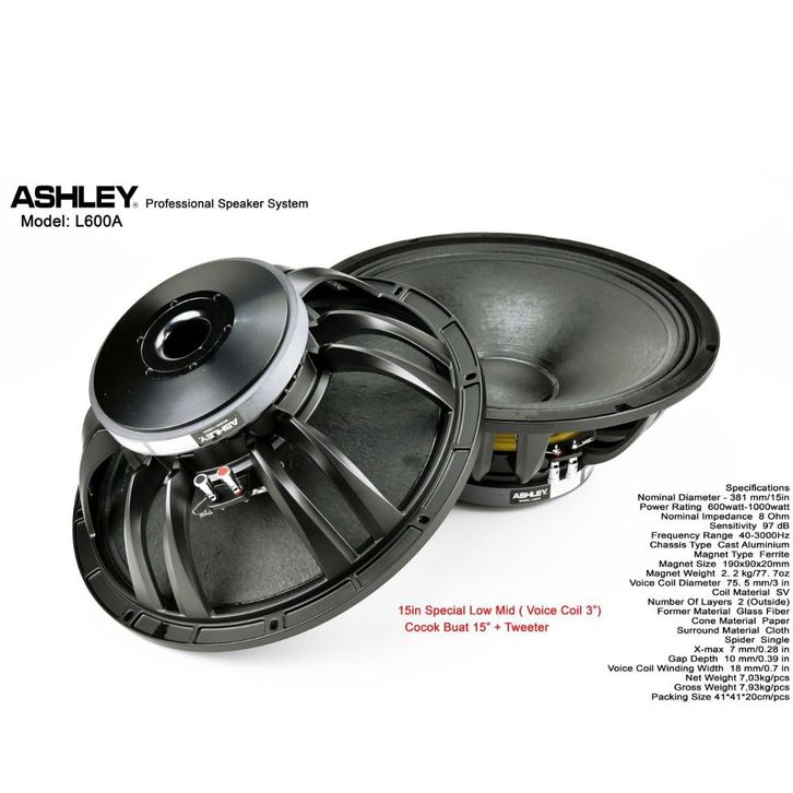 Speaker Component Ashley L 600 A Original Woofer 15 inch Mid - Low