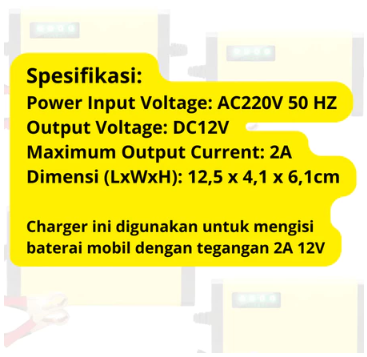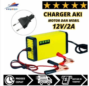 Alat Cas Aki Motor & Mobil Alat Pengisian Daya Aki 12V 2A Motor Intelegent Charger 12V 2Ampere Adaptor Pengisi Daya Bate